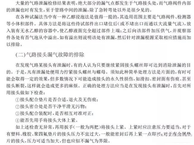 此外,氣路閥件內(nèi)部松動、脫落或有污物,也常導(dǎo)致漏氣;一般氣路中間漏氣問題較少,偶爾也有管路折斷漏氣。