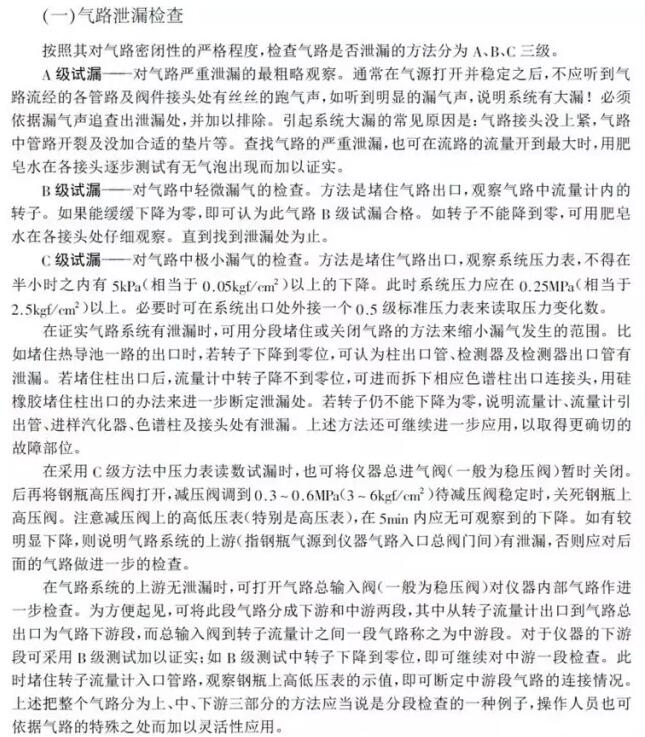 三、氣相色譜儀氣路泄露的檢查與排除