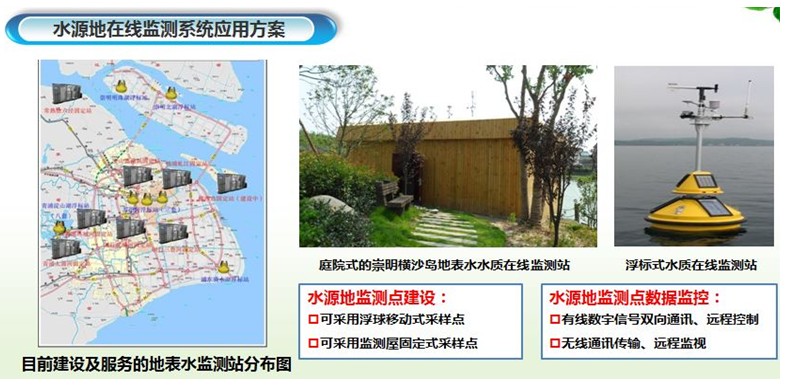水源地水質(zhì)監(jiān)測系統(tǒng)解決方案主要參照HJ/353-2007 《水污染源在線(監(jiān)測)系統(tǒng)安裝技術(shù)規(guī)范》標(biāo)準(zhǔn),采用浮球移動式水質(zhì)采樣點和監(jiān)測屋固定式采樣點兩種方式采樣監(jiān)測。通常在水源地取水點周圍,每5~10公里設(shè)置一個水質(zhì)監(jiān)測點。
