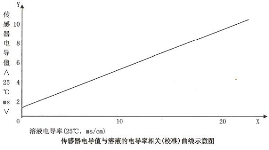 多孔隙將被土壤溶液所充滿,土壤溶液中的鹽分離子測定時,儀器所顯示的用鉑網(wǎng)電極測得的電導(dǎo)值與土壤電導(dǎo)率之間的關(guān)系曲線,在一定范圍內(nèi),近似一條直線,可用公式Y(jié)=BX+A表示。式中A稱為截距,B稱為斜率,它們是決定傳感器特性的兩個常數(shù)。