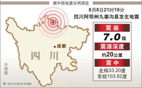 中國(guó)地震臺(tái)網(wǎng)正式測(cè)定:2017年08月08日21時(shí)10分在四川阿壩州九寨溝縣(北緯33.20度,東經(jīng)103.82度)發(fā)生7.0級(jí)地震,震源深度20千米。目前救援工作正在緊張有序地進(jìn)行之中。