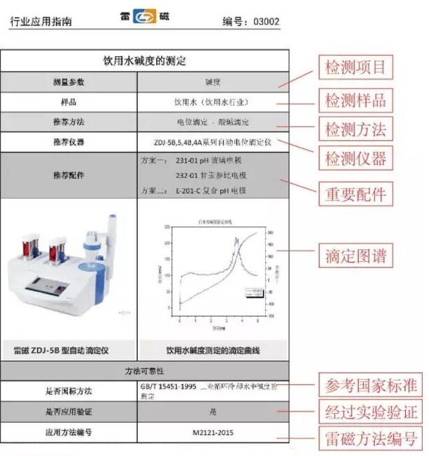 《行業(yè)應用指南》根據(jù)行業(yè)分析測試需求,旨在為行業(yè)用戶提供合適的分析測試方法、分析儀器和關鍵配件信息;提供測試方法依據(jù);以及提供雷磁內部應用方法文件信息等。以《行業(yè)應用指南》為參考,用戶可以簡單便捷地選擇合適的分析測試方法、儀器和配件,最終完成所需的測試,得到所需的結果。