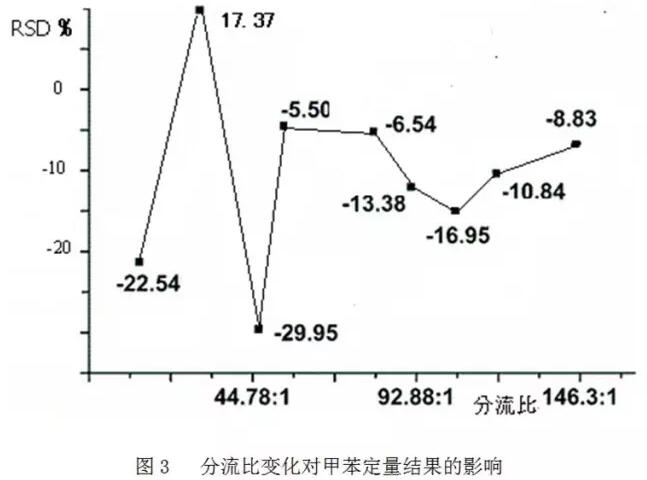 ③ 為減少分流比大小對分離測定的影響,在樣品濃度和柱容量允許的前提下,盡力選擇小點(diǎn)的分流比。
