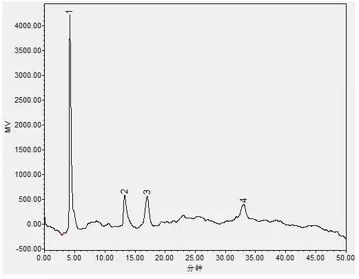 (2)相同濃度下4種組分的出峰響應(yīng)值相差較大,配制混合標(biāo)準(zhǔn)溶液時(shí)可以依據(jù)樣品中的含量適當(dāng)降低組分1或者增加其它組分的濃度;