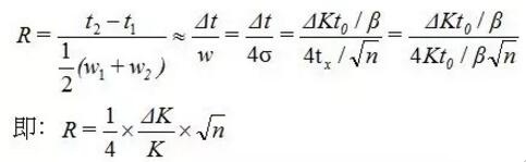 色譜分離度又稱分辨率,用來表征兩個(gè)相鄰色譜峰的分離程度,用R表示。R等于相鄰色譜峰保留時(shí)間之差與兩色譜峰峰寬均值之比。計(jì)算公式為: