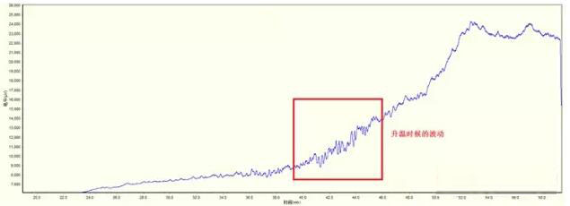 圖8 FID噴咀未擰緊漏氣升溫時候引起的基線波動