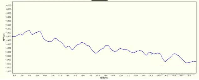 對于儀器而言,儀器氣路系統(tǒng)的故障相對來說還是比較容易判斷的,一般的波動比較有規(guī)律,同時波動的周期又比較長。需要說明的是,對于有規(guī)律的波動,電氣上的故障也會引起,簡單的區(qū)別在于電器上引起的有規(guī)律的波動一般是比較尖銳,類似于尖峰,寬度比較窄。